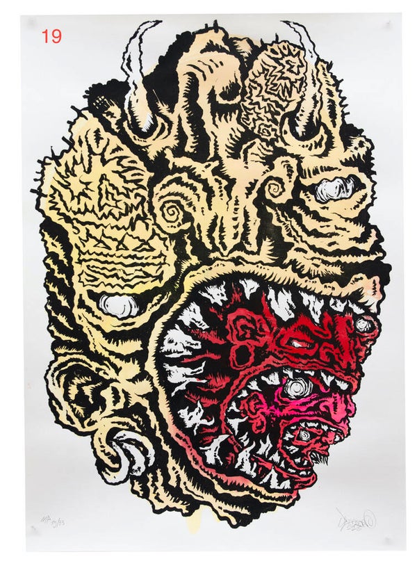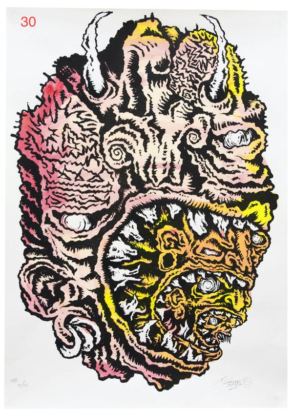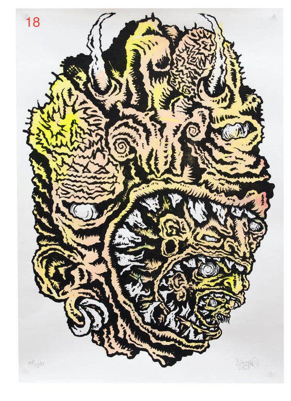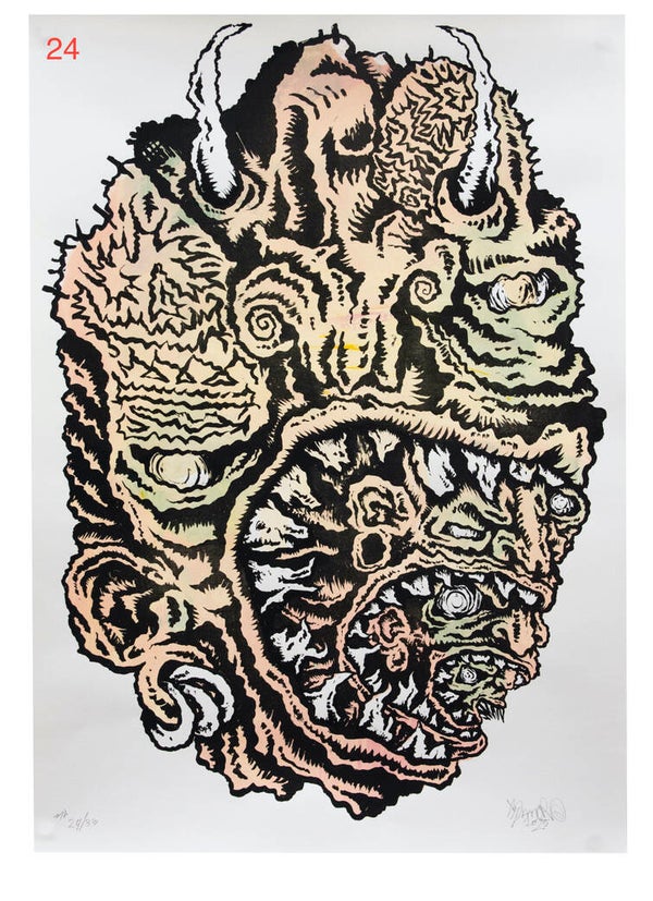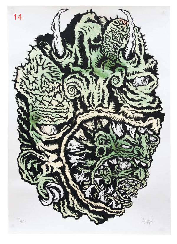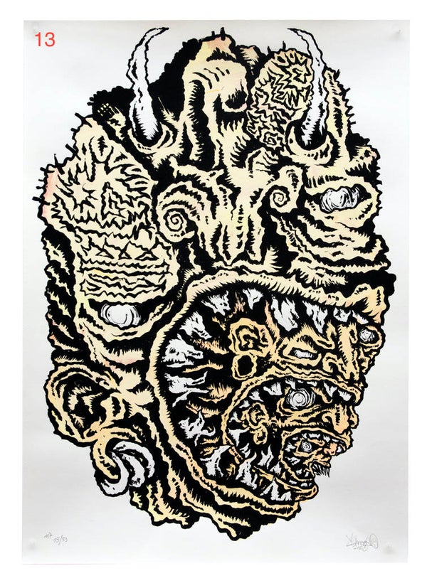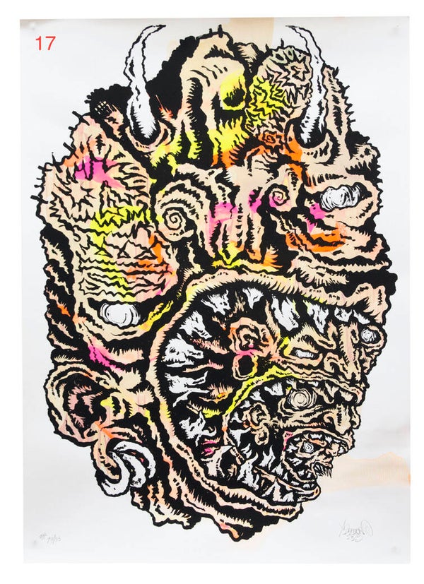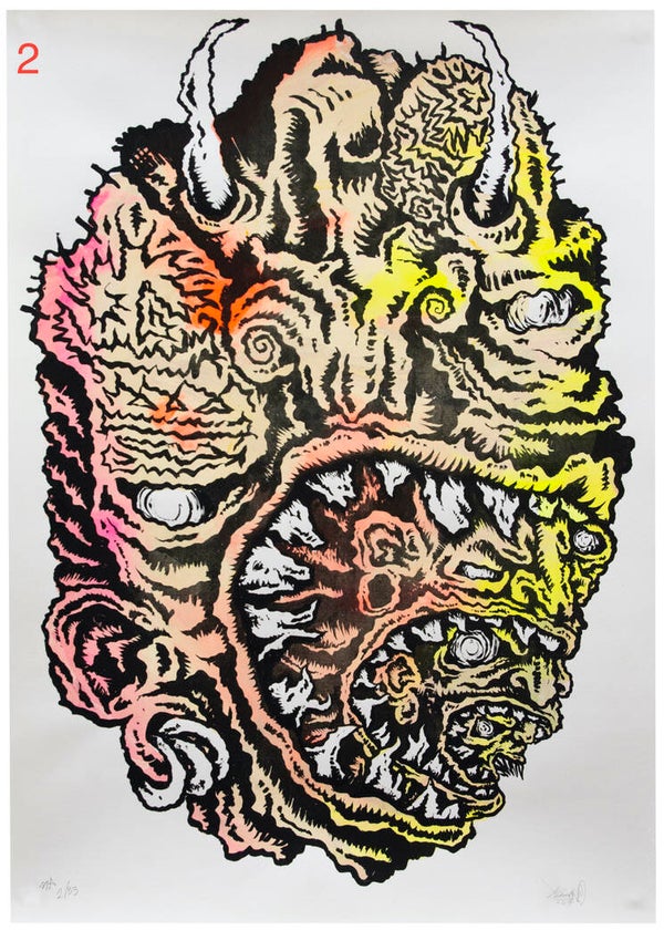 Screenprinted monoprints exhebited @ Studio Vitrine.Each print is unique in its choice of colour. Hand printed by SAMOR.